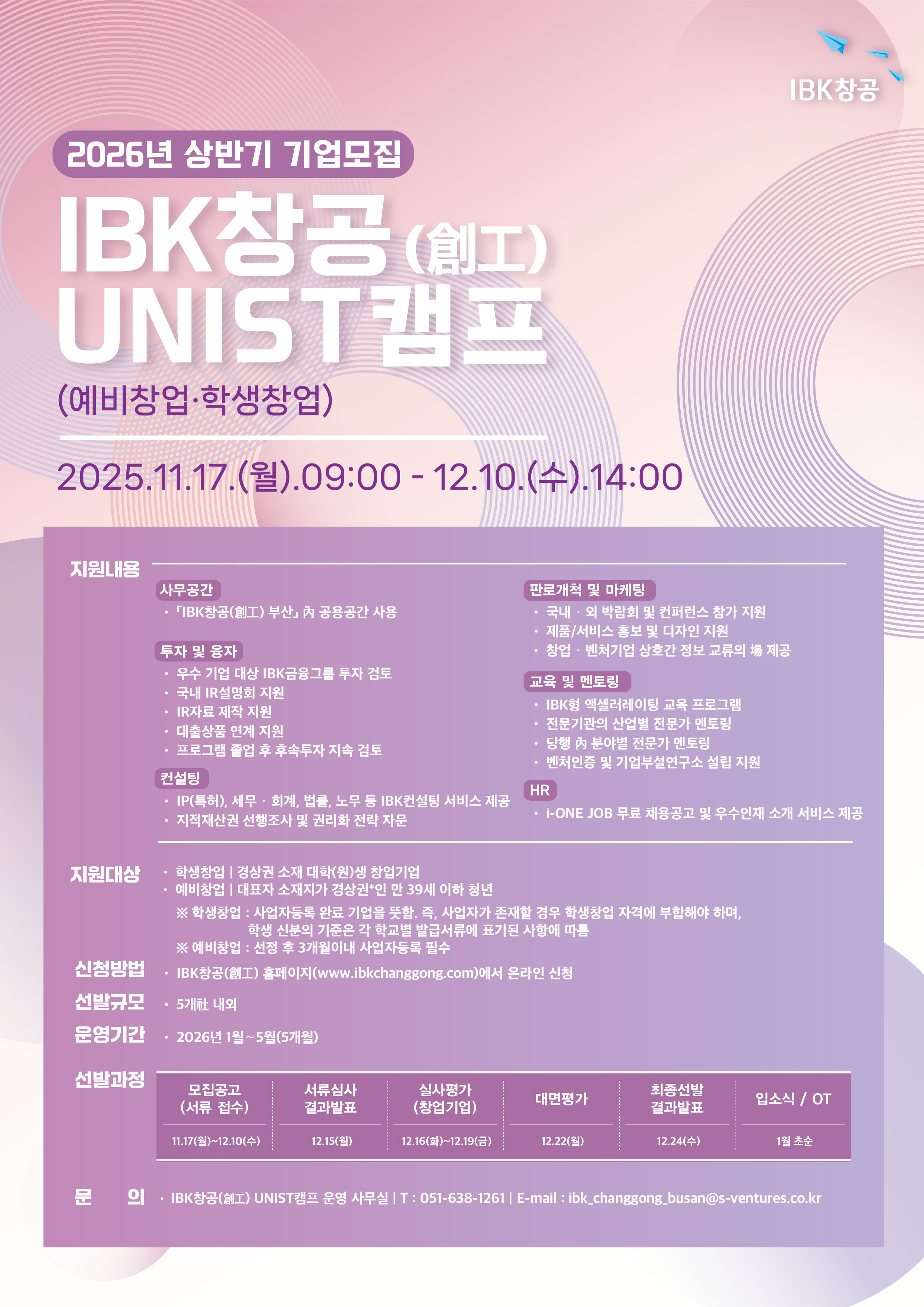 IBK창공(創工) UNIST캠프 운영 사무실(051-638-1261)