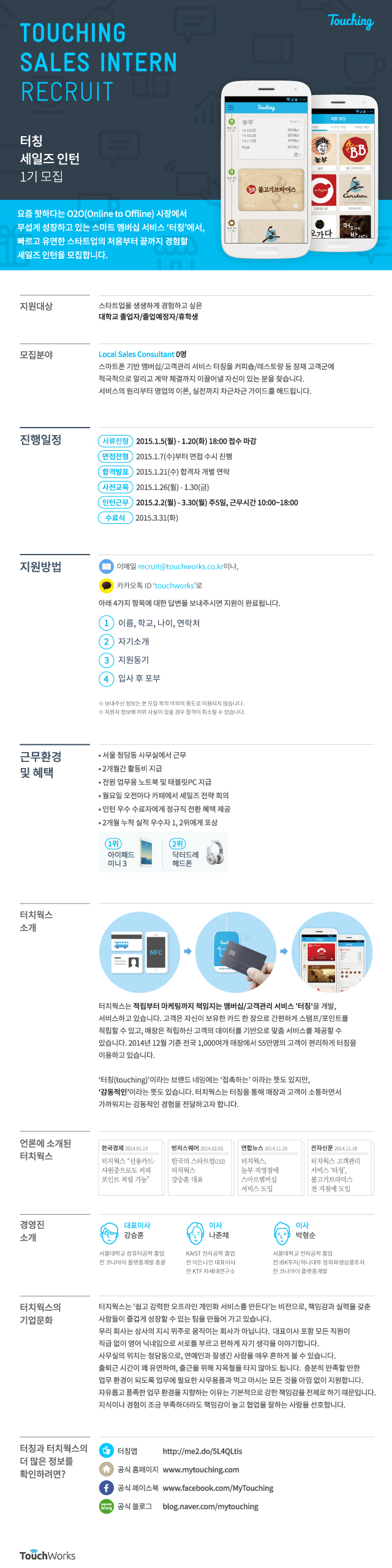 [인턴] 모바일 멤버십 '터칭' 영업직 인턴사원 채용